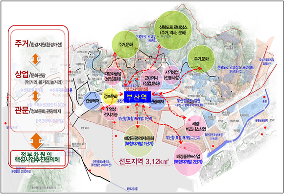 한편 ‘부산 원도심 재창조를 위한 창조경제플랫폼 구축사업’은 도시재생특별법에 의한 정부의 첫 도시재생 공모사업으로 북항재개발 구역 및 부산역일원을 중심으로, 항만, 부산역의 역세권, 산복도로의 노후주택 밀집지역, 초량동 상업지역 등 초량동 일대 3.12㎢의 원도심 일원을 재창조하는 사업이다. 2014년부터 2017년까지 4년 동안 국비 250억 원, 시비 250억 원이 투입된다.