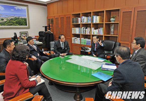 ▲▲ 훈춘시 인민정부 대표단이 22일 이병선 속초시장을 만나 속초항과 훈춘을 잇는 국제항로와 관련해 한.중 지방정부간 협력방안 등을 협의했다.(사진제공=속초시청)