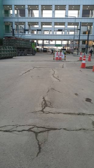 ▲현대프리미엄아울렛 주변 도로의 균열현상