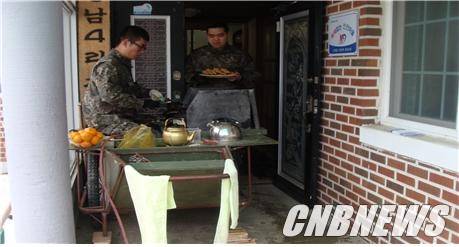 ▲▲ 인제 상남면 111공병대대(부대장 중령 임기헌)는 지난 23일 상남 4리 경로당을 방문해 직접 만든 붕어빵을 관내 어르신들과 함께 나누며 훈훈한 이웃사랑을 실천했다.(사진제공=인제군청)