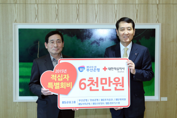 (CNB=최원석 기자) BS금융그룹(회장 성세환)은 지난 22일 오후 부산은행 문현동 본점에서 대한적십자사 부산지사(회장 김종렬)에 2015년 대한적십자 특별회비 6천만원을 전달했다고 23일 밝혔다.
