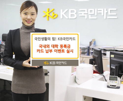 또 오는 3월 22일까지 국민카드(KB국민 체크카드, KB국민 기업카드, KB국민 선불카드, KB국민 비씨카드 제외)로 대학 등록금을 납부한 고객에게는 추첨을 통해 1등(1명) 300만원 캐시백, 2등(2014명) 1만원 캐시백 등 총 2015명에게 캐시백 혜택을 제공한다.
