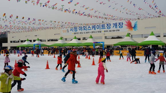 지난해 12월24일 문을 연 시청 야외스케이트장은 주말에는 평균 3000여 명, 평일에는 평균 1000여 명이 찾으며 성황을 이루고 있다. 이용객은 초․중‧고교생 부터 대학생, 주말 가족 단위 이용객까지 다양하다.