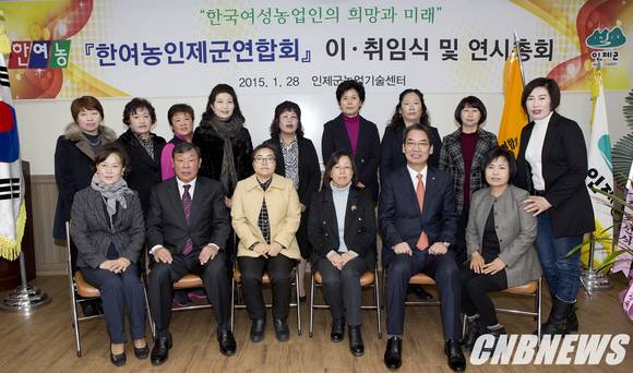 (CNB=최성락 기자) (사)한국여성농업인 인제군연합회 회장단 이·취임식이 28일 농업기술센터 2층 소회의실에서 이순선 인제군수, 한의동 인제군의장을 비롯한 회원 등 40여명이 참석한 가운데 열렸다. 이날 행사에선 그동안 투철한 사명감과 책임감으로 연합회를 이끌어 온 제5대 김미영 전임회장에게 공로패 수여 및 제6대 송연옥 신임회장 취임식이 열렸다.