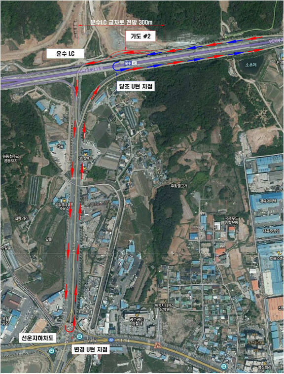 차량 우회는 2016년 10월28일까지 광주에서 평동/나주방향의 운수IC 삼거리 구간에 대해 실시하며, 그동안 기존 광주~무안 간 고속도로 운수교 하부에 있는 U턴 구간은 차단되므로 선운지하차도 위에서 U턴해 광주방향으로 진입해야 한다. 평동/나주→광주방향 진행 차량은 현재와 같이 통행할 수 있다.