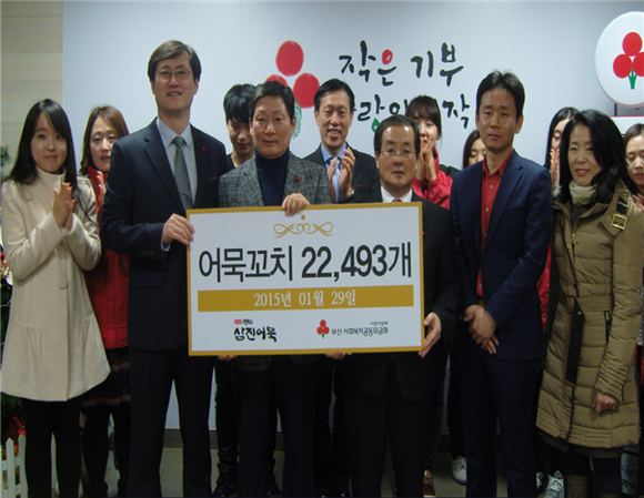(CNB=최원석 기자) 삼진어묵(대표이사 박종수)이 지역 내 불우이웃을 위해 29일 오후 사회복지공동모금회 부산사무소를 통해 어묵꼬치 2만2493개(1천만 원 상당)를 기부했다.