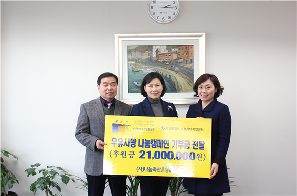 이번 기부행사는 나눔축산운동 경남도지부와 부산우유농협에서 ‘우유사랑! 나눔캠페인’의 일환으로 심각한 우유수급 불균형을 타개하고 축산업에 대한 긍정적인 인식확산과 우유소비 촉진 및 소외계층들에게 우유를 기부하고자 하는 취지로, 부산우유농협 임직원 및 낙동 조합원들의 참여로 조성된 후원금으로 부산시에서 선정한 가정위탁 보호아동 70명에게 1년간 우유를 제공하게 된다.