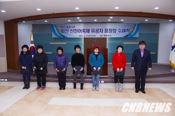 군에 따르면 지난 1월 10일부터 2월 1일까지 개최한 2015얼음나라 화천 산천어축제가 대한민국을 넘어 세계인과 함께하는 축제로 성공적으로 개최됨에 따라 성공적 축제 추진에 기여한 공적을 위로·격려하고 축제 참여자로서의 보람과 자긍심을 갖도록 하고자 유공자에 대한 표창을 수여했다고 전했다.