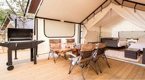 각 글램핑장에는 개별적으로 바베큐를 즐길 수 있게 마련돼 있는데 특별히 음식을 준비하지 않아도 저녁에 바베큐 파티를 할 수 있는 재료들을 기본적으로 제공한다. 글램핑장은 프리미엄 글램핑, 온더힐 글램핑, 숲속 글램핑, 트레일러 글램핑장 등이 마련돼 있어 인원수와 기호에 맞춰 장소를 선택할 수 있다.
