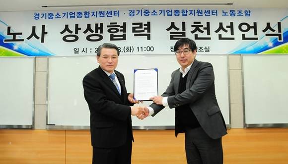 경기중기센터 노사가 상생협력을 위해 두 손을 맞잡았다.