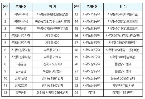 김포도시공사(사장 정옥균)는 민족고유의 명절인 ‘설’을 맞아 고향을 찾는 귀성객들의 주차난 해소를 위해 공영주차장을 무료 개방한다. 무료로 개방되는 주차장은 김포관내 22개 노외 및 노상주차장으로 2월18일부터 20일까지 3일간 개방된다.