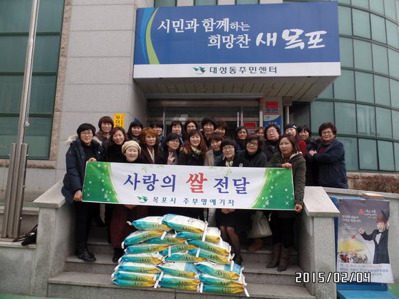 목포시 주부명예기자단은 4일 대성동주민센터에서 월례회의를 개최한 후 사랑의 쌀 전달식을 가졌다.