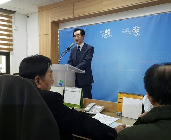 ▲안병용 의정부시장이 9일 간담회를 통해 끝까지 법적 투쟁을 할 것임을 언급하고 있다.