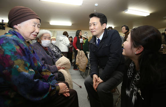 ▲남경필 경기도지사가 동일본 대지진 최대 피해지역인 미야기현 이시노마키시를 방문하여 가설주택주민들과 이야기를 나누고 있다.(사진=경기도 제공)