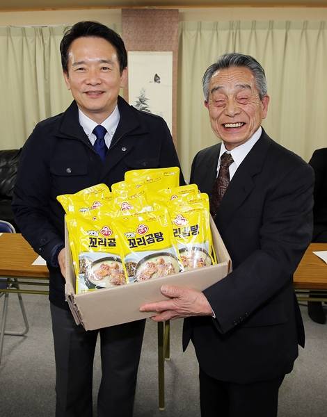 ▲일본 현지시각 8일 오후 외무성 초청으로 일본을 공식방문 중인 남경필 경기도지사가 동일본 대지진 최대 피해지역인 미야기현 이시노마키시를 방문하여 가설주택주민들과 간담회하고 위문품을 전달하고 있다. (사진=경기도 제공)