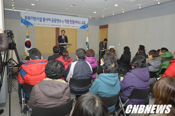 ▲▲ (CNB=최성락 기자) 인제군과 인제군문화재단은 9일 인제산촌민속박물관 1층 다목적실에서 문화기반시설 종사자 60여명을 대상으로 친절도 향상을 위한 교육을 실시했다. (사진제공=인제군청)