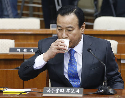 ▲이완구 국무총리 후보자가 11일 오전 국회에서 열린 인사청문회에서 물을 마시고 있다.(사진=연합뉴스)