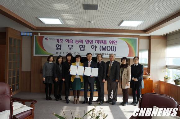 ▲▲ (CNB=최성락 기자) 강릉시(관광문화복지국장 권기종)와 강릉교육지원청(교육장 곽동진)은 지난 10일 오전 10시께 강릉교육청에서 '기초 학습 능력 향상 지원을 위한 업무 협약식'을 갖고 상호 협력을 통해 지역 아동들에게 기초적인 학습 능력을 지원함으로써 일상생활에 필요한 기초 학력 보장에 도움을 주기로 협약 했다. (사진제공=강릉시청)