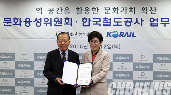 12일 서울 용산구 한국철도공사 서울 본사 회의실에서 ‘문화융성위원회-한국철도공사(코레일), 역 공간을 활용한 문화가치 확산을 위한 업무협약 체결식이 열렸다.