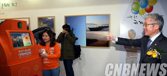 이날 참석한 김종덕 문화체육관광부 장관이 가고 싶은 관광지를 배경으로 사진촬영을 하고 있다.(사진=문화체육관광부)