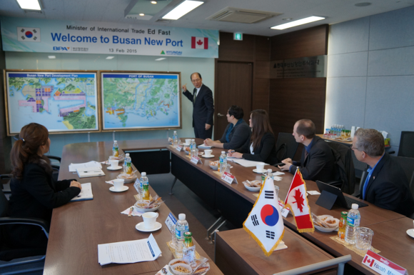 올해 1월 1일자로 발효된 한-캐나다 FTA를 통한 양국 간 경제·통상 협력 강화방안을 논의하기 위해 방한한 에드 패스트(Ed Fast) 캐나다 통상장관 및 경제사절단은 한국 대표 수출입 항만인 부산항을 방문해 FTA가 적용되는 캐나다산 수출 화물의 운송과정을 확인하고, 부산항의 최신 항만 인프라를 시찰했다.