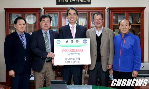 ▲▲ (CNB=최성락 기자) 용대향토기업(대표 정수길)은 16일 인제군청을 방문해 지역인재 양성을 위해 써달라며 장학금 300만 원을 전달했다. (사진제공=인제군청)