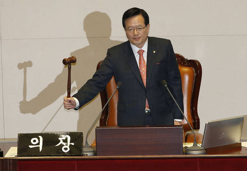 ▲이완구 총리후보자의 인준표결을 위한 본회의가 열린 16일 정의화 국회의장이 국회 본회의장에서 의사봉을 두드리고 있다. (사진=연합뉴스)