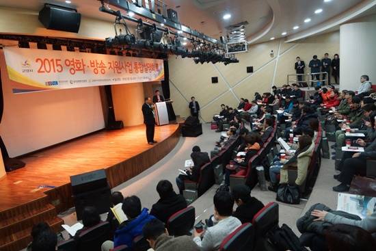 고양지식정보산업진흥원은 지난 13일 빛마루에서 '2015 영화‧방송 지원사업 통합설명회'를 개최해 최근 화두가 되고 있는 11일 발표된 1조원 규모의 'K-컬쳐밸리'에 대해 설명하는 시간을 가졌다. 고양시 관내외 90여개 기업, 130여명의 인원이 참석해 성황을 이뤘다.