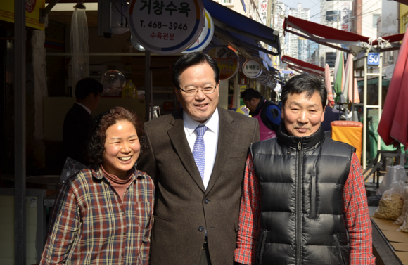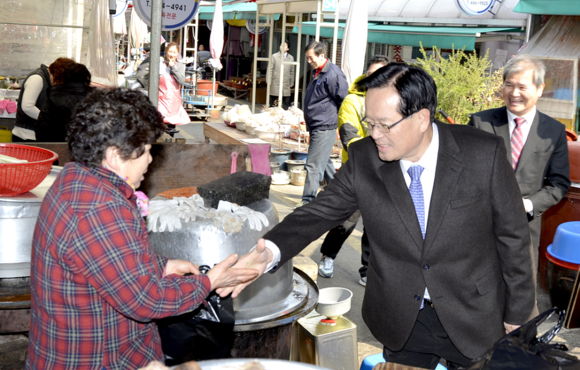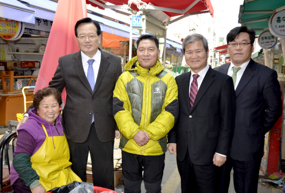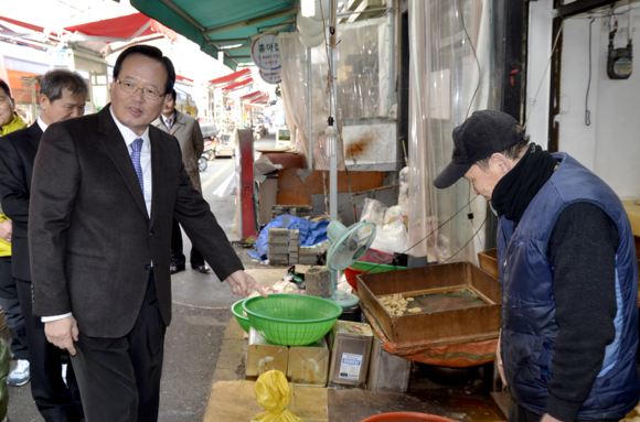 (CNB=최원석 기자) 정의화 국회의장이 설 연휴를 맞아 자신의 지역구인 부산을 방문한 가운데, 18일 오후 1시 동구 수정시장을 찾아 시장 곳곳을 둘러보며 시장상인들과 악수를 하는 등 환담을 나누고 애로사항을 청취했다.