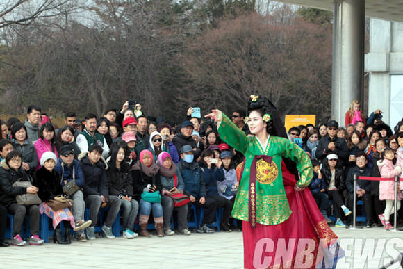 민족최대 명절 설날인 19일 서울 종로구 국립민속박물관에 연휴 나들이를 나선 관람객들이 뿌리패예술단의 'Dance Meets Percussion Arts BEAT' 공연을 관람하고 있다.