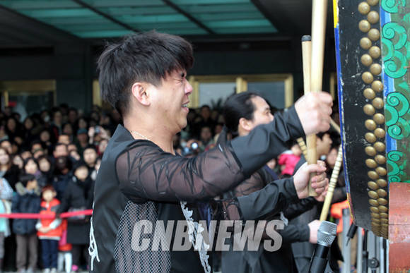 민족최대 명절 설날인 19일 서울 종로구 국립민속박물관에 연휴 나들이를 나선 관람객들이 뿌리패예술단의 'Dance Meets Percussion Arts BEAT' 공연을 관람하고 있다.
