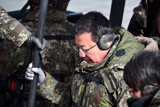 17사단 감바위 중대에서 상황보고를 받은 홍철호 의원 일행은 고속단정을 이용해 한강하구 일대를 훑어보며 철책제거의 필요성을 논의했다. 고속단정을 이용한 현장확인은 감바위 선착장(한강신도시 홍보관 인근)에서부터 전류리까지 북상했다가 김포대교까지 이동 후 다시 감바위로 돌아오는 코스다.