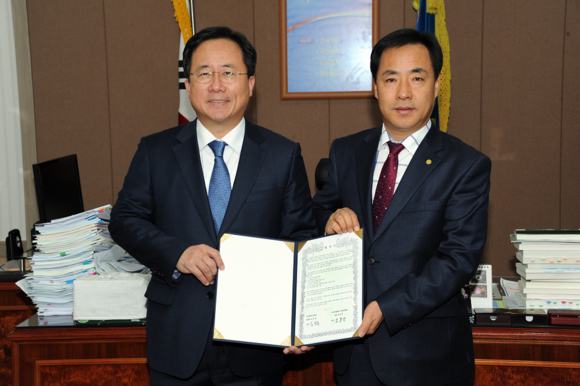 부산시교육청은 23일 오전 10시 교육감실에서 부산시청년연합회(회장 김용군)와 청소년들의 안전하고 건강한 학교생활을 돕기 위해 청소년지킴이 활동의 활성화와 안전지대 확보 관련 업무협약을 체결했다. (사진제공=부산교육청)