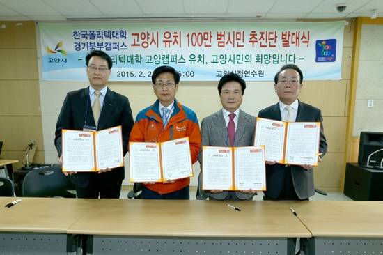 발대식에 이어 고양시는 경제계를 대표하는 고양상공회의소 및 고양시기업경제인연합회, 킨텍스, 교육계를 대표 고양교육지원청 및 5개 특성화 고등학교와 '한국폴리텍대학 경기북부캠퍼스 고양시 유치를 위한 상호협력 협약식'을 진행했다.