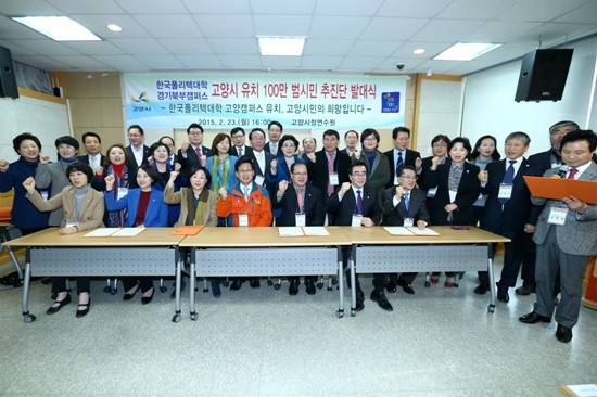고양시는 한국폴리텍대학 경기북부캠퍼스 고양시 유치를 위해 지난 23일 고양시정연수원 컨퍼런스홀에서 최성 시장 등이 참석한 가운데 '한국폴리텍대학 고양캠퍼스 유치를 위한 100만 범시민 추진단'을 출범했다.