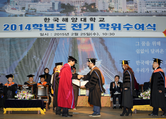 (CNB=최원석 기자) 한국해양대학교(총장 박한일)는 25일 오전 대강당에서 ‘2014학년도 전기 학위수여식’을 개최했다.
