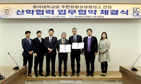 (CNB=최원석 기자) 동아대학교(총장 권오창)와 주한유럽상공회의소(소장 Thilo Halter)가 26일 오후 1시 30분 동아대 승학캠퍼스 본부 대회의실에서 산학협력 협약을 체결했다.