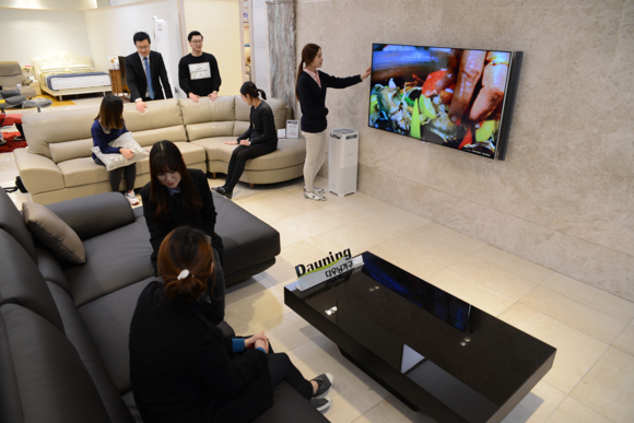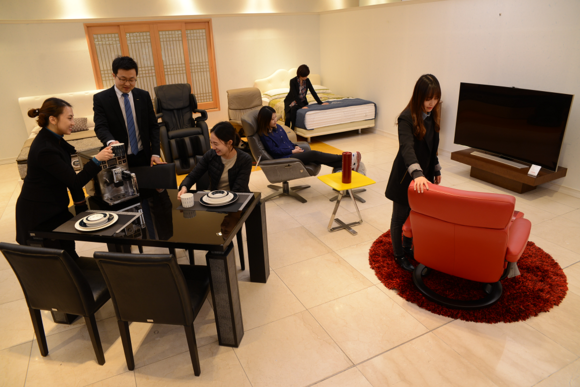 본격적인 봄 웨딩시즌을 맞아 롯데백화점 부산 4개점은 오는 3월 5일까지 혼수용품을 최대 50% 할인하는 ‘웨딩박람회’를 진행중인 가운데, 롯데 센텀점에서는 모델하우스 같은 ‘풀하우스 신혼집’을 선보여 방문객들이 진열된 혼수용품을 살펴보고 있다. (사진제공=롯데백화점 센텀점)