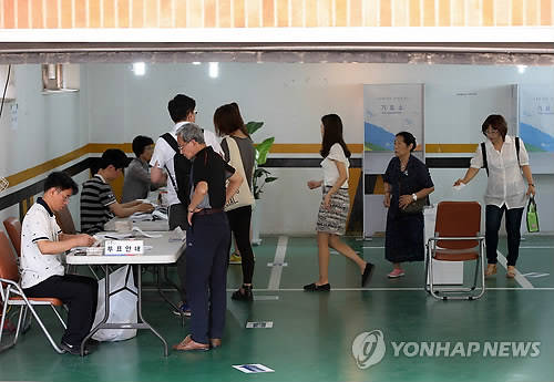▲작년 7·30 재보궐선거 서울 동작구 투표소에서 유권자들이 투표하기 위해 줄지어 서 있다.(자료사진=연합뉴스)