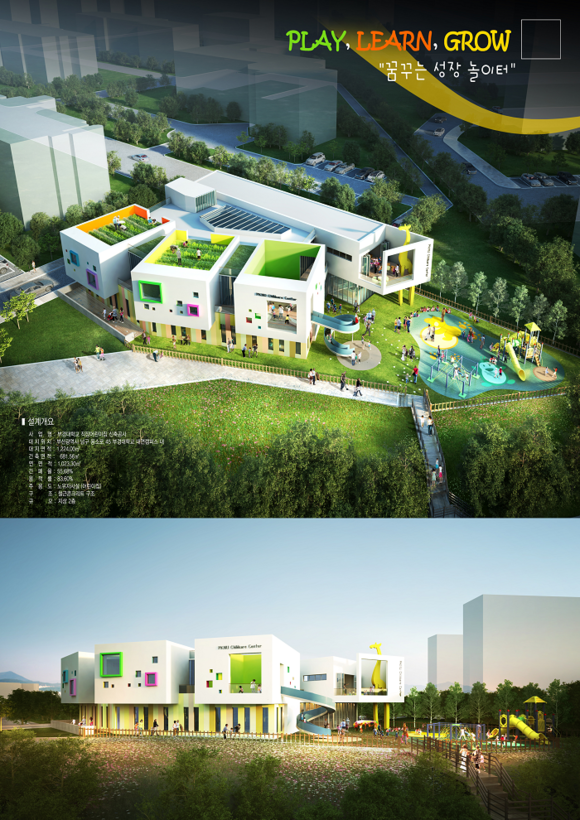 아이들이 안전하게 뛰어놀며 다양한 공간에서 재미있게 체험하고 배우는 어린이집을 표방한 당선작은 건물형태와 기능, 배치계획 등이 우수한 것으로 평가됐다.