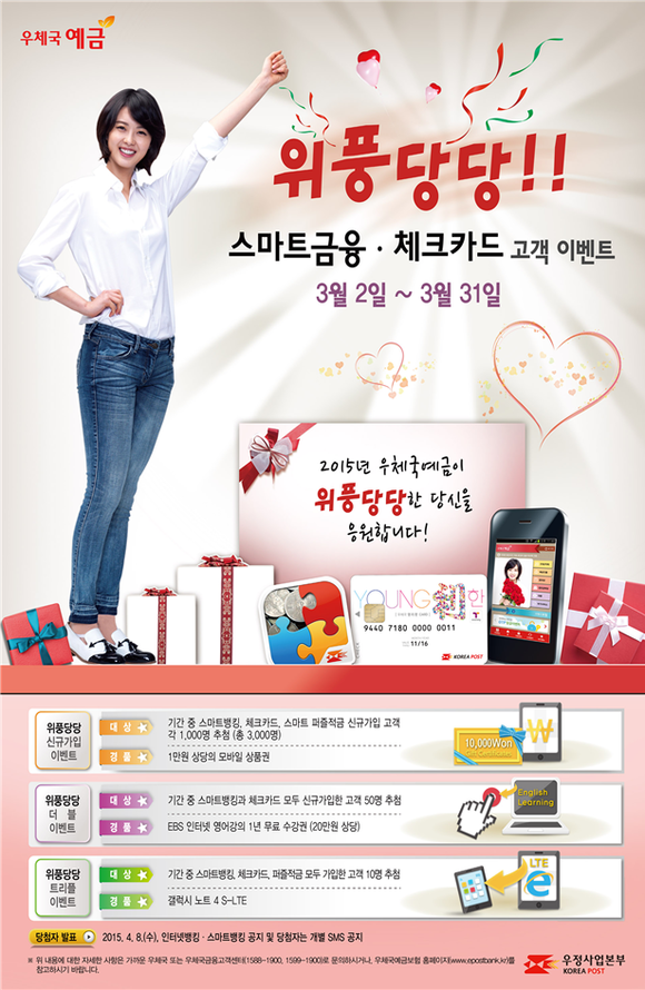 본 이벤트에 관한 자세한 사항은 전국 우체국이나 우체국예금보험 홈페이지 (www.epostbank.kr) 또는 우체국금융 고객센터(1588-1900, 1599-1900)에서 확인할 수 있다.