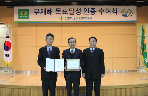 (CNB=최원석 기자) 안전보건공단 부산지역본부(본부장 심재동)은 2일 오전 지역본부 강당에서 무재해 목표달성 사업장인 ㈜대한항공 항공우주사업본부(대표 함명래)에 무재해 인증패를 수여하고 유공 직원을 표창했다고 밝혔다.
