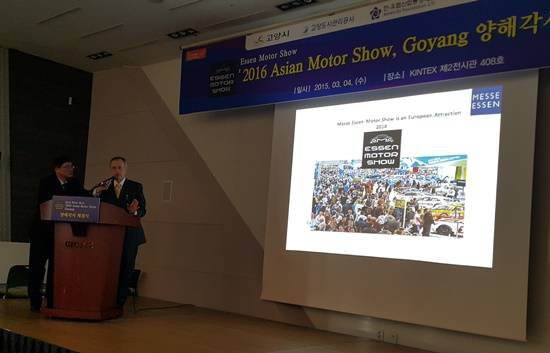 독일과 가교 역할을 하는 친마이스터 니콜라우스 박사는 "자동차 튜닝산업은 국제적인 사업이다. 메세 에센은 1913년에 설립된 회사로 에센에서만 다양한 전시회를 열고 있다"며 "에센모터쇼는 연 14000여개 업체가 전시회에 참가하고 있다"며 고양시에서 유치할 에센모터쇼가 아시아에서 크게 발전하기를 바란다고 언급했다.
