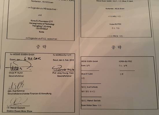 이로써 지난 최성 고양시장의 유럽 방문시 에센모터쇼 개최 합의에도 불구하고 국제간 계약에 따른 법률적 절차로인한 협약서의 양자대표간 공식 서명이 지연됨으로 야기된 일부 언론의 개최협약 논란에 종지부를 찍게 됐다.