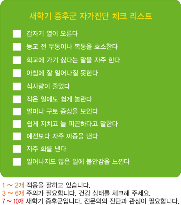 우리 아이가 얼마나 잘 적응할 수 있을지, 새로운 환경에서 친구들은 사귈 수 있을지 혹은 성적이 뒤쳐지진 않을지 걱정이 몰려온다. 하지만 이런 걱정은 사실 부모만이 아니라 아이들에게도 큰 부담으로 작용한다. 실제로 매년 3~5월이 되면 ‘새학기증후군’으로 병원을 찾는 소아 및 청소년들이 많다.