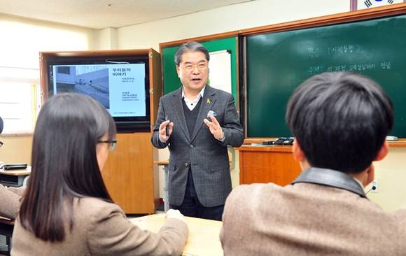 이날 수업에 이재정 교육감은 운영위원회 의결을 거쳐 학교에서 명예교사로 요청하여 창의적 체험활동 중 적응활동에 협력수업형태로 참여했다.