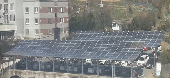 ▲목포시청 야외 주차장에 설치된 태양광 발전장치.
