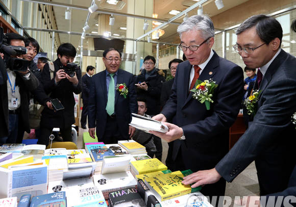 이날 김종덕 문화체육관광부 장관이 구입할 도서를 직접 고르고 있다.(사진=문화체육관광부)