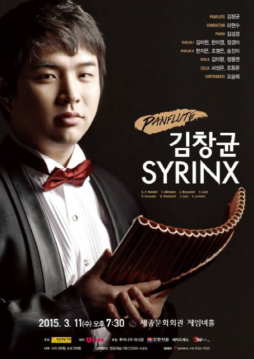 김창균 시링크스(Syrinx)를 이끄는 김창균 팬플루티스트는 아시아인 최초의 팬플루티스트이다. 그는 유럽 순회연주를 다니며 팬플루티스트의 입지를 다져왔으며, 팬플륫 명문 AMTP(Academia de Muzica, Teatru si Arta Plastice) 대학교와 동대학원을 졸업하고 유럽 팬플루트 거장 ‘게오르그 잔피에르’(Gheorghe Zamfir)에게 마스터 클래스도 받은 인물이다.