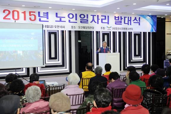오산시는 지난 6일 관내 웨딩의 전당에서 어르신들의 적극적 사회참여와 활기찬 노후생활 지원을 위한 2015년 노인일자리사업 발대식 및 소양교육을 가졌다.